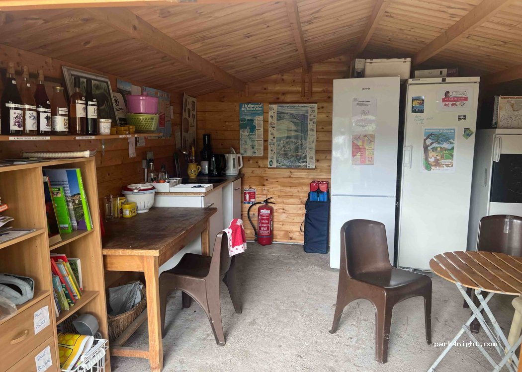 un endroit exceptionnel, calme, ombre sous les arbres, douches et toielttes très propres, bacs pour laver la vaisselle et le tri sélectif est en place. parfois des légumes et oeufs de la ferme à disposition contre quelques euros. le plus : un frigo toujours accessible pour garder au frais ces courses. un des meilleurs endroits de la région pour se détendre et dormir en toute tranquillité.