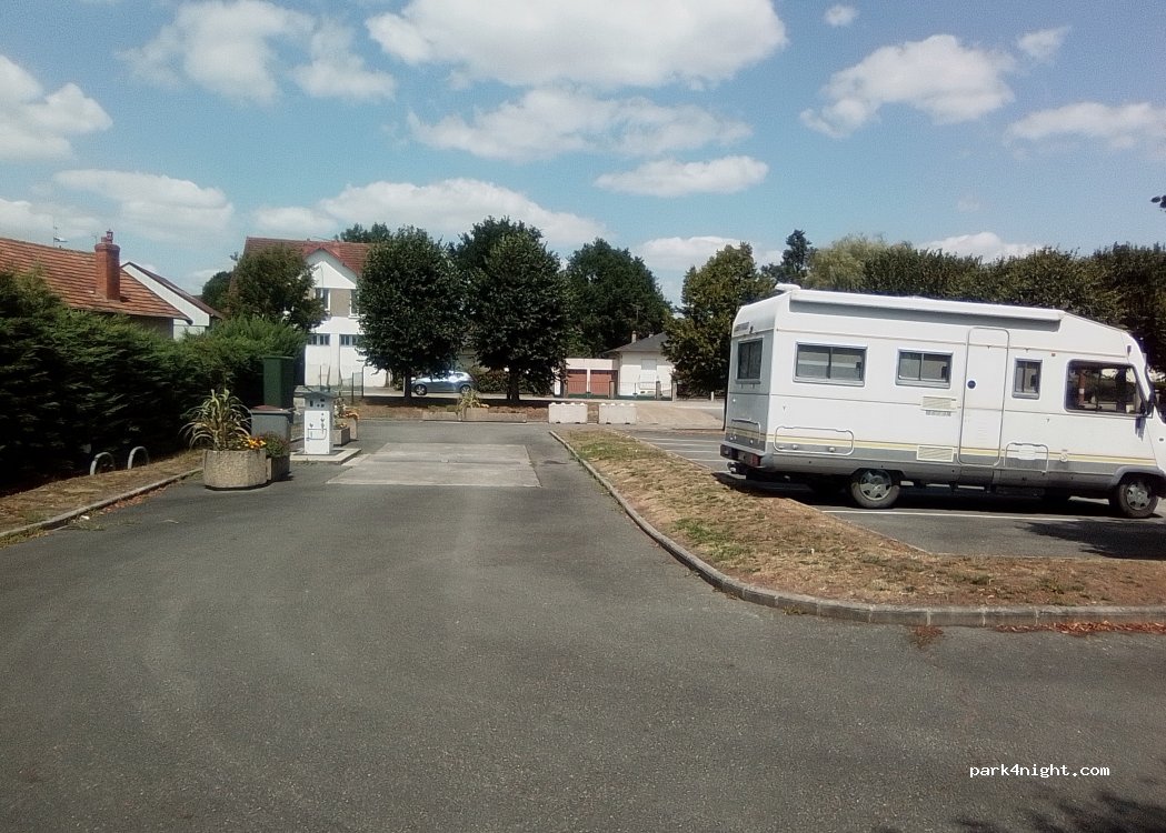 Très grand parking calme près de la salle des fêtes avec eau gratuite et vidanges et poubelles.
