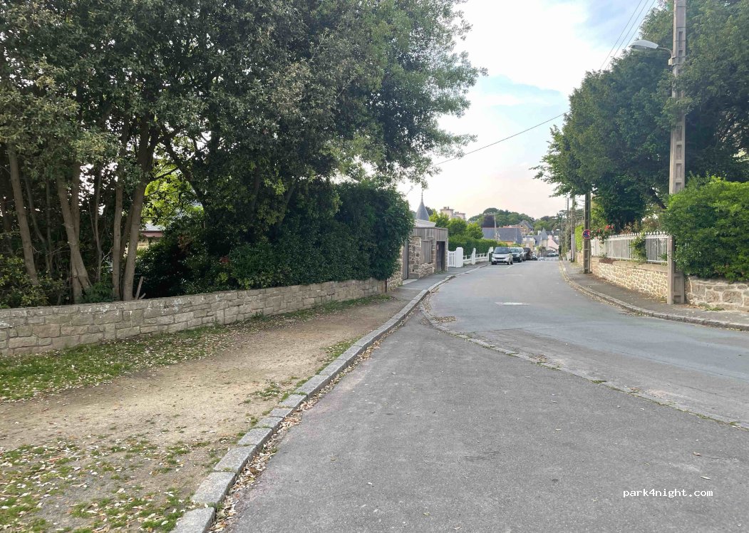 Schöner Platz mit toller Aussicht. Sehr ruhig. Fußläufig, 5 Min. gibt es eine Treppe zu einem schönen Strand. Keine Toiletten. Es gibt 2 Mülleimer, 3 Holzbänke 1 Holz-Sitzgruppe, die sich für ein Frühstück mit Blick auf die Bucht eignet. Von hier aus kann ein Radtour zu Saint Malo bequem gestartet werden. Bis zur Kathedrale in der Altstadt braucht man 15 Min. Keine Autos länger als 5m!