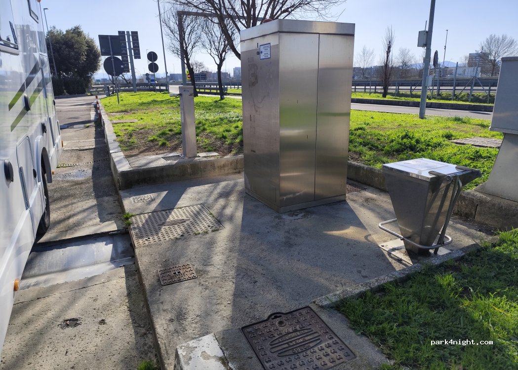 Área de descanso hacia Florencia. Le permite evacuar todos sus desechos y llenar su agua. Bien conservado.