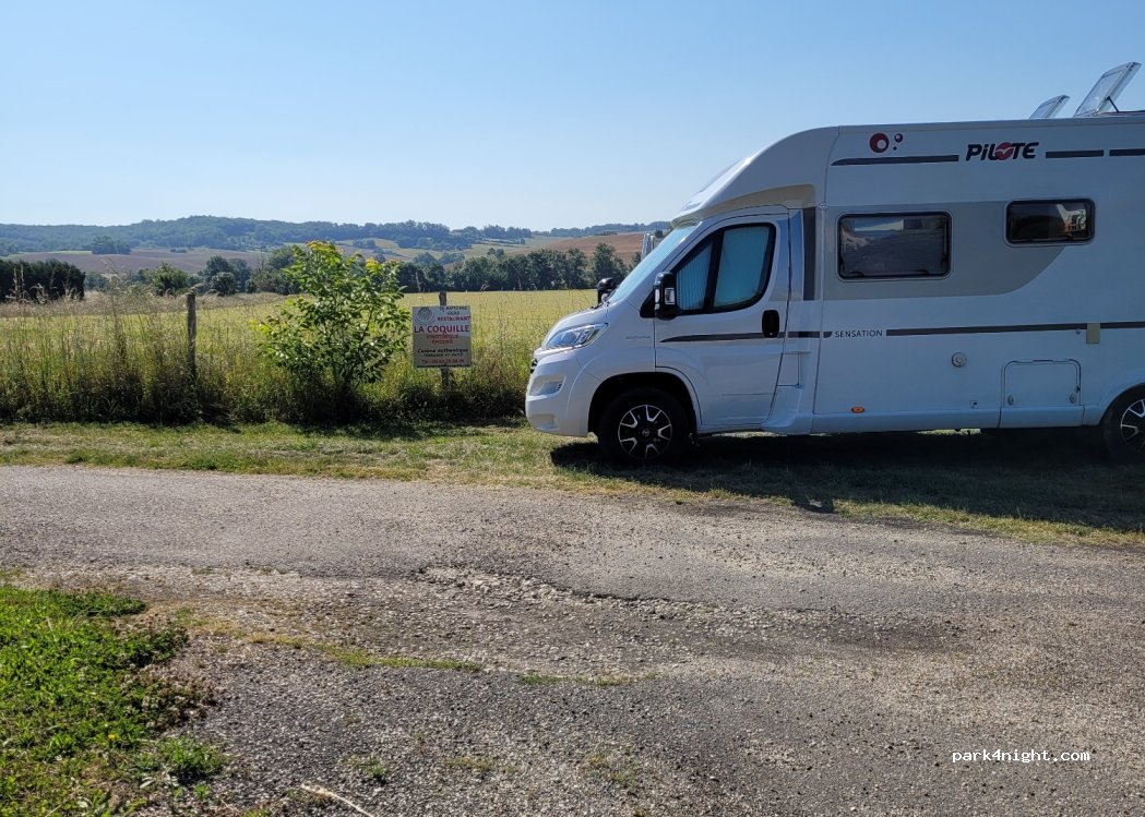 Calme, borne d'eau... Vidange... Petit restaurant La Coquille avec accueil et repas de qualité...