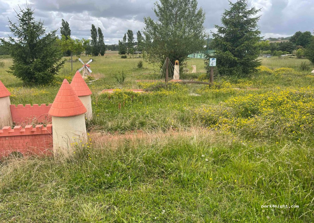Aire abandonné,pas d’entretien c’est envahi par l’herbes des poteaux en bois pourrissant sur le parking.plus rien à avoir avec les photos présentes sur park4night impossible de rajouter des photos.