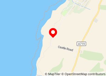 Superbe vue sur le large avec des emplacements en bord d'une petite route côtière peu passante. petit port de Dunure et ses WC publics à quelques centaines de mètres.