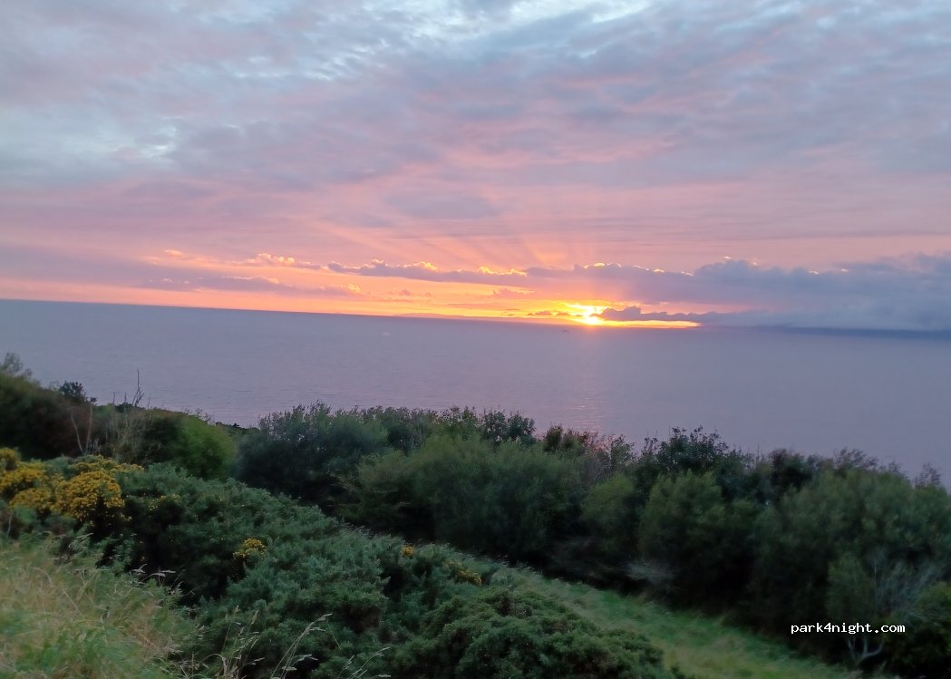 Great spot with views across to Arran. 10 minute walk acoss a field to a WW2 lookout post. Very little road traffic after dark. Tried to do a litter pick, but there wasn't any! 30/08/21