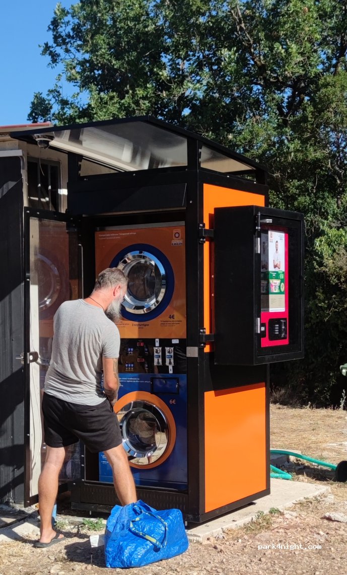 Toller, kostenloser Zwischenstopp. Die Toiletten liegen außen und sind die ganze Nacht zugänglich. Außenduschen haben wir im November lieber nicht getestet. Bei Bedarf sind sogar Wasser und Strom verfügbar. Das Essen in der Taverne ist sehr zu empfehlen!