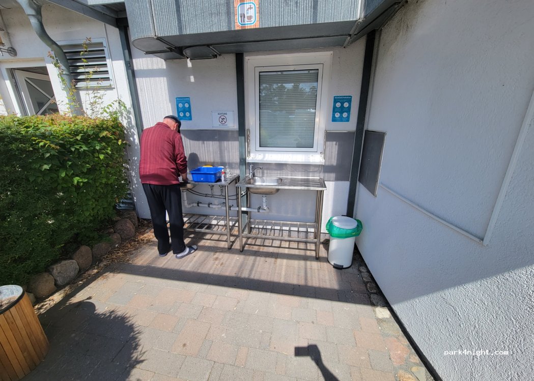 We turned up here without a booking at 8pm and the staff were very friendly and accommodating. Clean showers and toilets. 1€ for ~5 min shower. €16 for 1 night. Great stop for accessing the Puttgarden ferry!