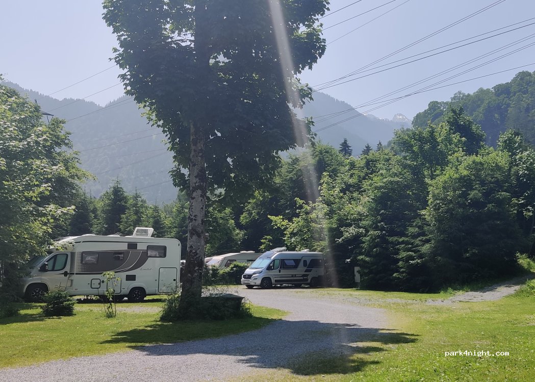 Sur la B188, à environ 1,5 km au nord de St. Gallenkirch. Signalisé 300 m avant l'entrée. Emplacements plats et gravillonnés dans la vallée du Montafon dans un camping. Partiellement entouré d'arbres. Il y a des lignes électriques à haute tension au bord de la place. Un léger bruit de fond de la route principale, absolument aucun problème la nuit. Les douches sont très propres, très bien agencées, antichambre sèche. (Évier) cuisine également très propre. Division intelligente. Lave-linge/sèche-linge et congélateur à disposition (possible de partager). Vidange des toilettes chimiques derrière le bloc sanitaire.