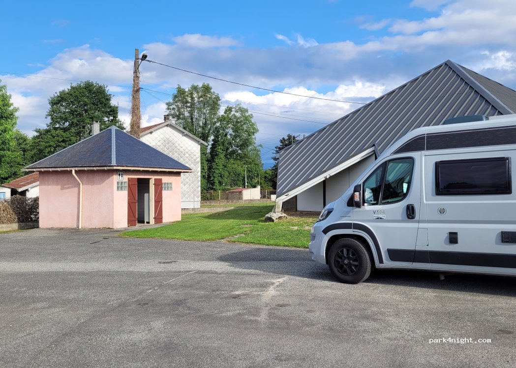Grand parking plat, surface goudronnée. Calme la nuit, mais un peu de bruit le matin par l'arrivée de quelques véhicules d'entreprise. Bien pour une nuit. WC fermés.