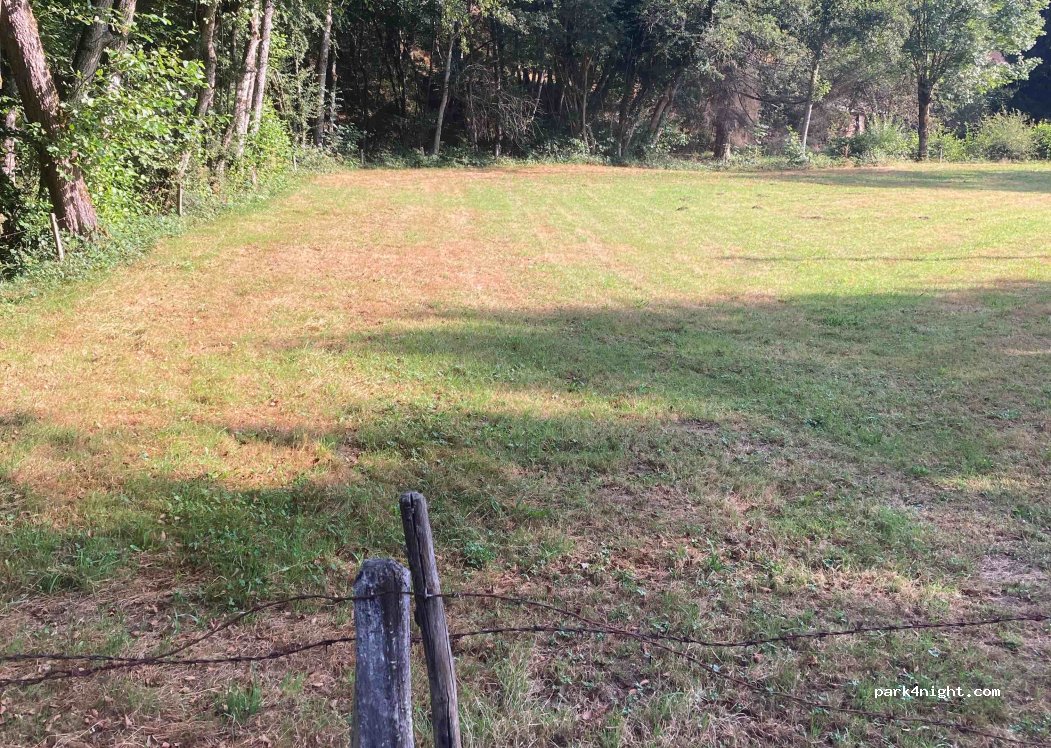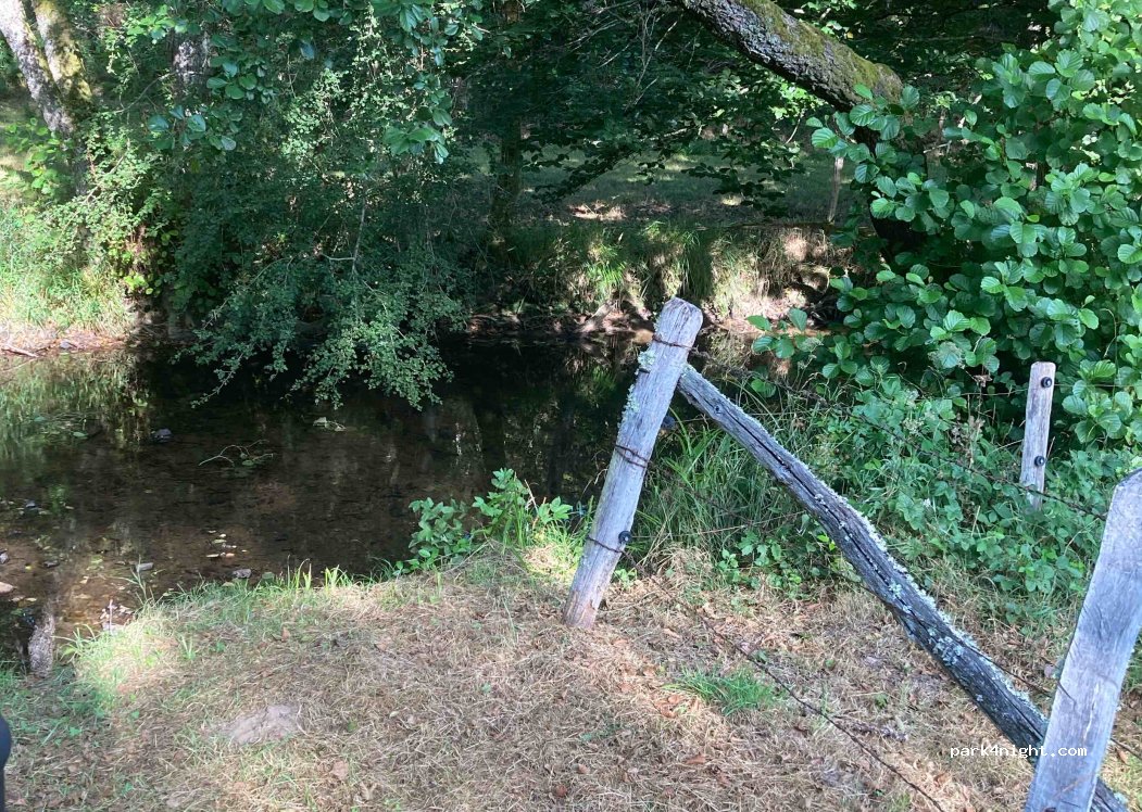 Small parking lot next to the entrance to a field on the edge of a watercourse. Chemin de Saint Victor. Difficult access for large vehicles: large descents and tight bends but the detour is worth it.