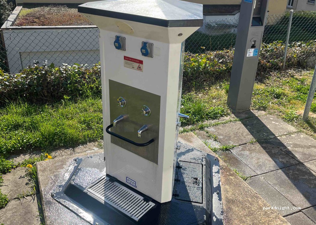 On ne peux visiblement pas y dormir en ce moment car ils ont mis des barrières mais on peut tout de même remplir l’eau et vider les eaux noires. Pas testé l’électricité mais vu qu’on ne peut pas y dormir...