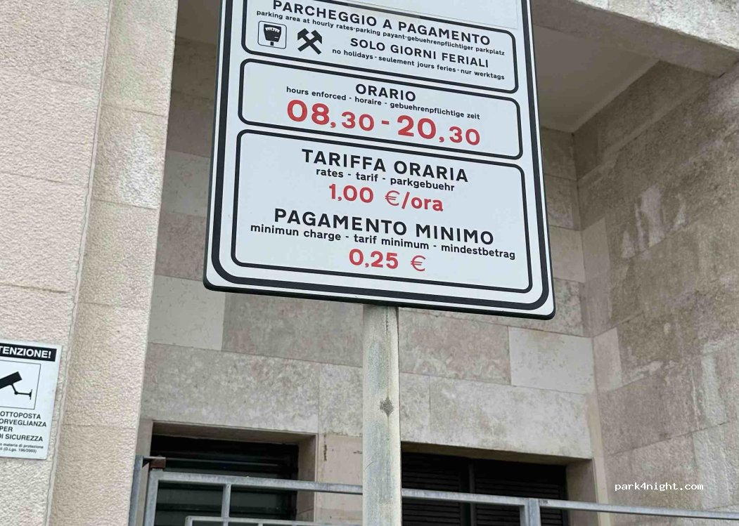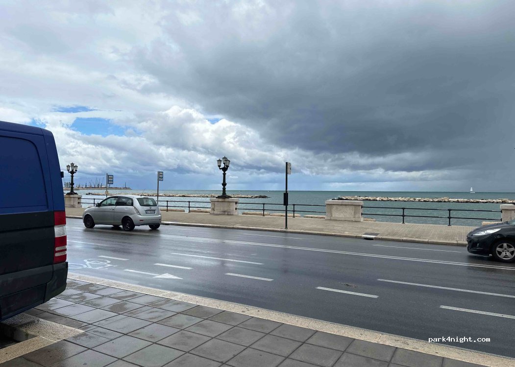 Parcheggio pubblico con circa 40 posti auto nei giorni feriali 1€/h dalle 8:30 alle 20:30. Gratuito nei fine settimana e negli orari non di punta. Sembra sicuro e c'è una fermata dell'autobus proprio accanto e proprio sul mare. Proprio accanto c'è una strada a quattro corsie che porta direttamente al centro della città. Non dormirei qui.