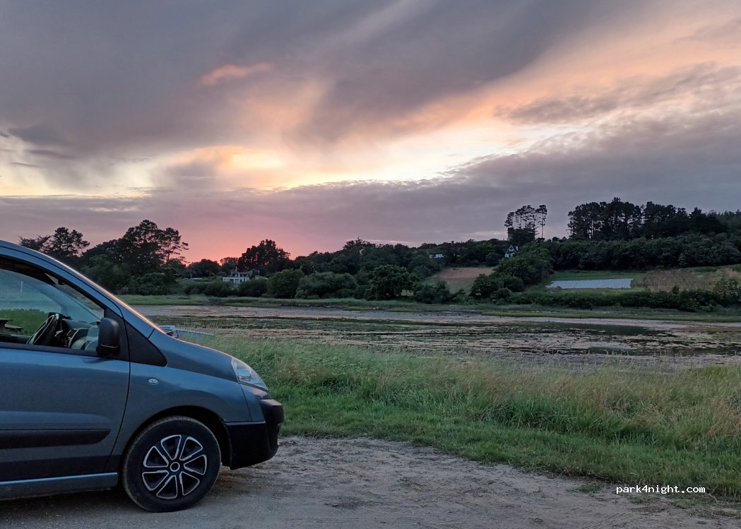 Très bel endroit . Fréquenté par les bretons la journée ( certains aimeraient d’ailleurs faire leur loi au sujet du stationnement ! ) . Calme le soir et la nuit . Plage agréable .Il y avait 3 véhicules cette nuit et tous ont laissé propre derrière eux . Merci à la commune d’accueillir gracieusement les cc .