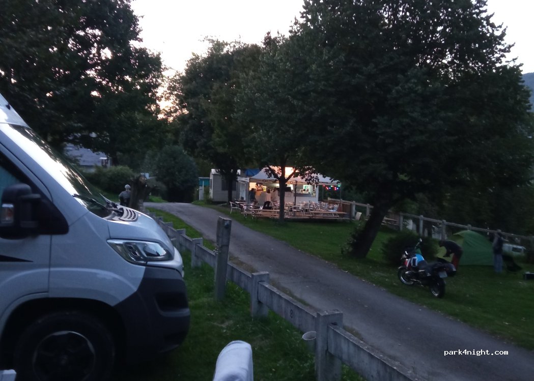 Assez cher pour camping-car, mais propre, stationnement sauvage sur le parking juste en dessous du camping, endroit agréable, point positif boucherie excellente au village