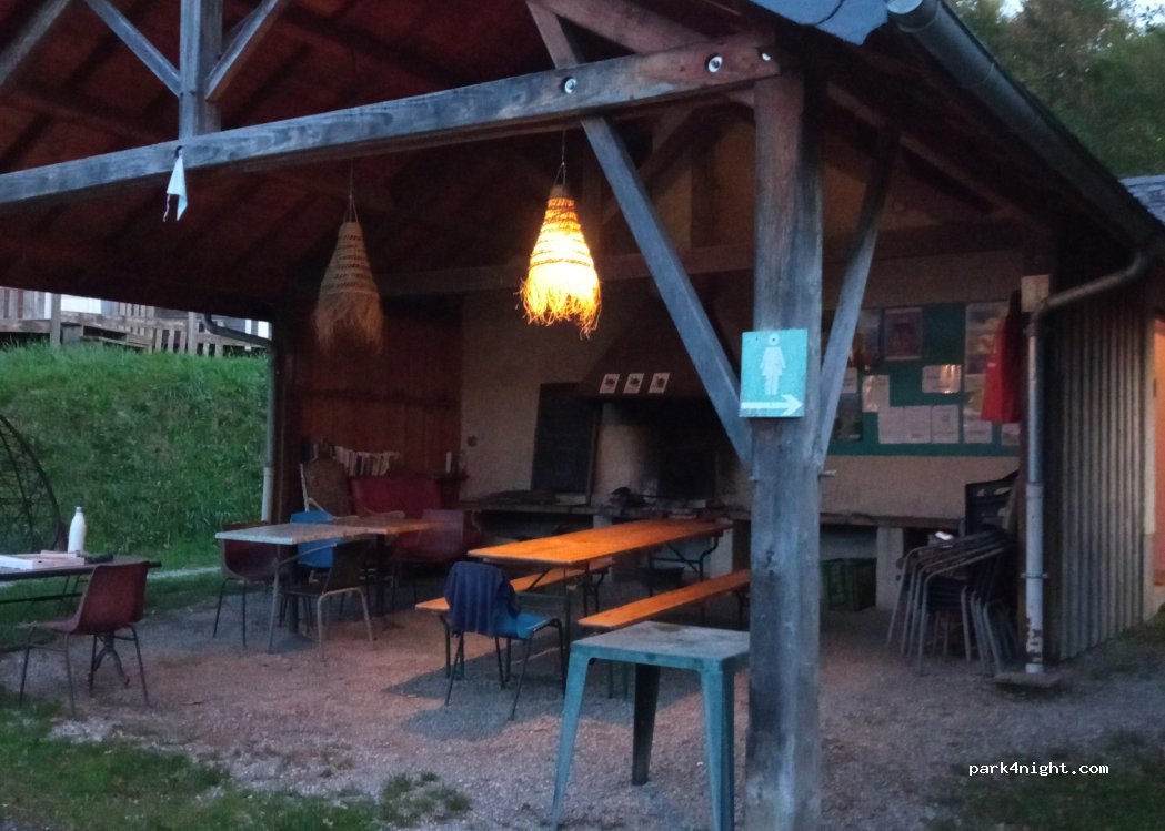 bon accueil , calme , sanitaires propres douches chaudes réglables , petit snack à l'entrée , en pleine verdure proche du village une halte s'impose seulement 15.08€