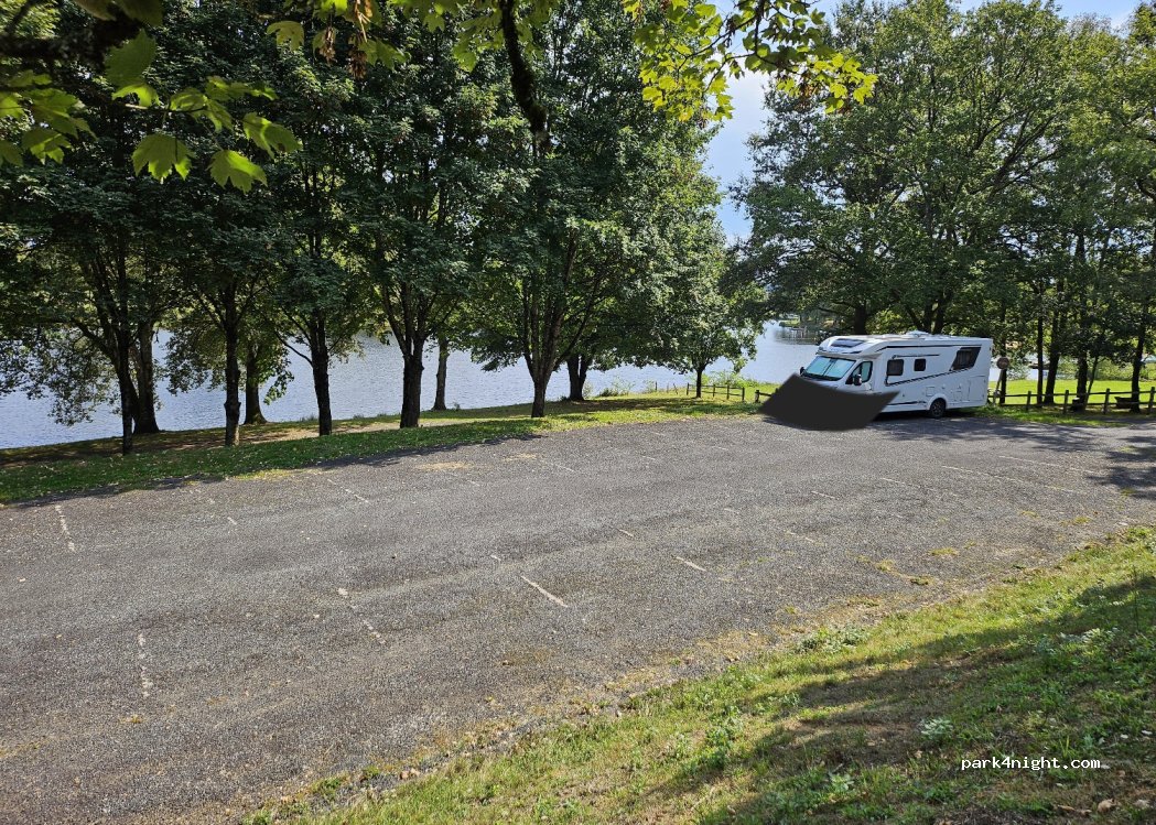 En venant de l'autoroute sous Limoges, le détour est important mais l'étape est super agréable. C'est assez isolé et donc très calme. Le lac (ou étang) est bien jolie. Mi-septembre, je suis seul et le parking (à partager avec les voitures) est très grand, très accessible même par les gros camping-cars. Il n'y a aucun service car c'est un parking. Il y a le camping à côté comme c'est déjà indiqué.