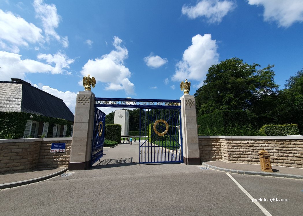 Zona d'estacionament de vehicles davant del cementiri militar d'Estats Units. És millor que l'aparcament del cementiri alemany. Nit tranquil·la, només alterada pel pas d'avions mentre l'aeroport està en funcionament. L'aparcament és gratuït i amb indicacions de màxim de quatre hores per estar-hi.