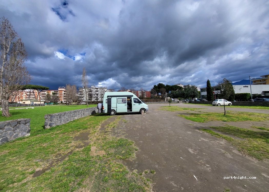 Super Platz! Die Plätzen sind sehr eben. Wir fühlten uns zu jeder Tageszeit sehr sicher. Es ist ungewöhnlich sauber. Abfalleimer werden jeden Tag geleert. Viele Hundefreunde im Park & Einheimische die sich zum Sport oder spazieren treffen. Am Bhf sehr netter Betreiber. Billet nach Napoli & Tipps zum Fahrplan direkt am Schalter.