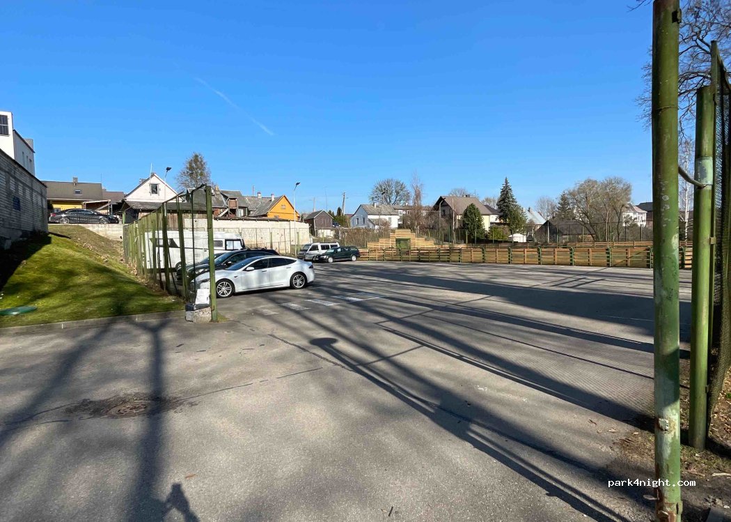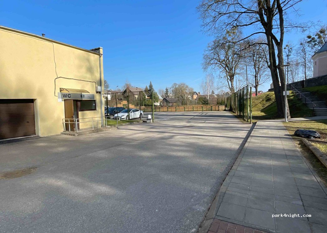 Ein kostenloser, sehr ruhiger und sicherer Parkplatz in der Innenstadt mit Videoüberwachung neben einem Sportplatz und der Kirche. Die Toilette war geschlossen, aber der Platz ist für eine ruhige Übernachtung zu empfehlen.