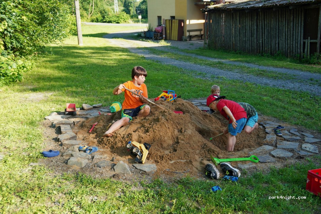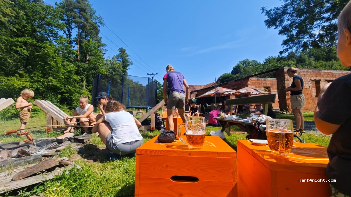 A small campsite in the valley of the Velička stream, located between Hranice and Potštát, not far from the flooded quarry in Olšovec. The site offers a sandbox for children, a slackline, a fire pit, a grill, and a small kitchen equipped with a stove, shower, and toilet. There is also a kiosk available for basic refreshments.