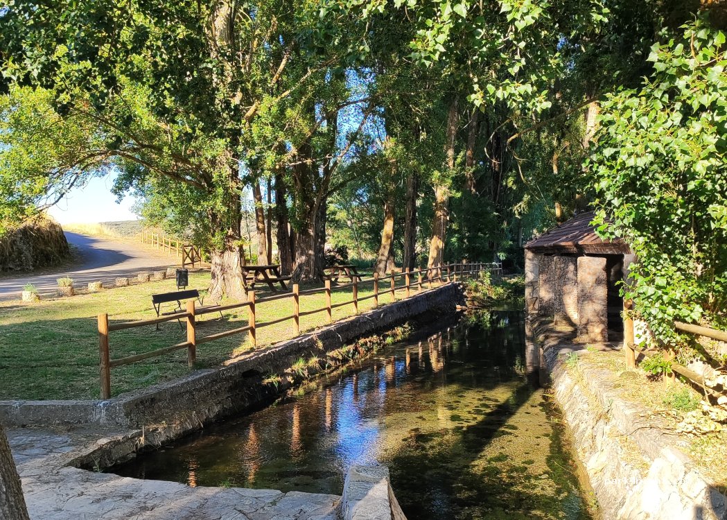 Un sitio tranquilo, agradable, con mesas de picnic y agua. El rumor del agua del río y de la fuente de varios caños que hay junto a un antiguo lavadero hacen que sea muy relajante dormir aquí.