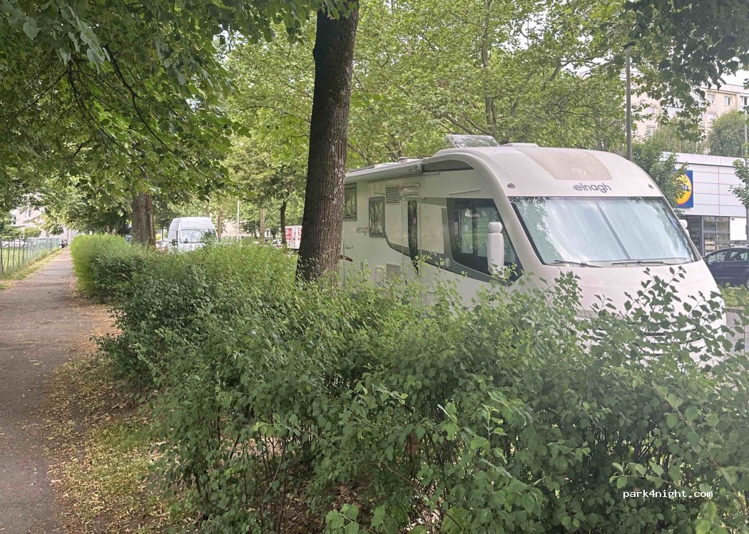 Good spot for visit the city center.We came Saturday evening and it was a lot of free space for parking. Sutible for longer campers, free of charge. Buses are passing every half hour so it is not good for light sleepers. We recommend exploring the city at night. Most of coffe shops are closing at 10pm.