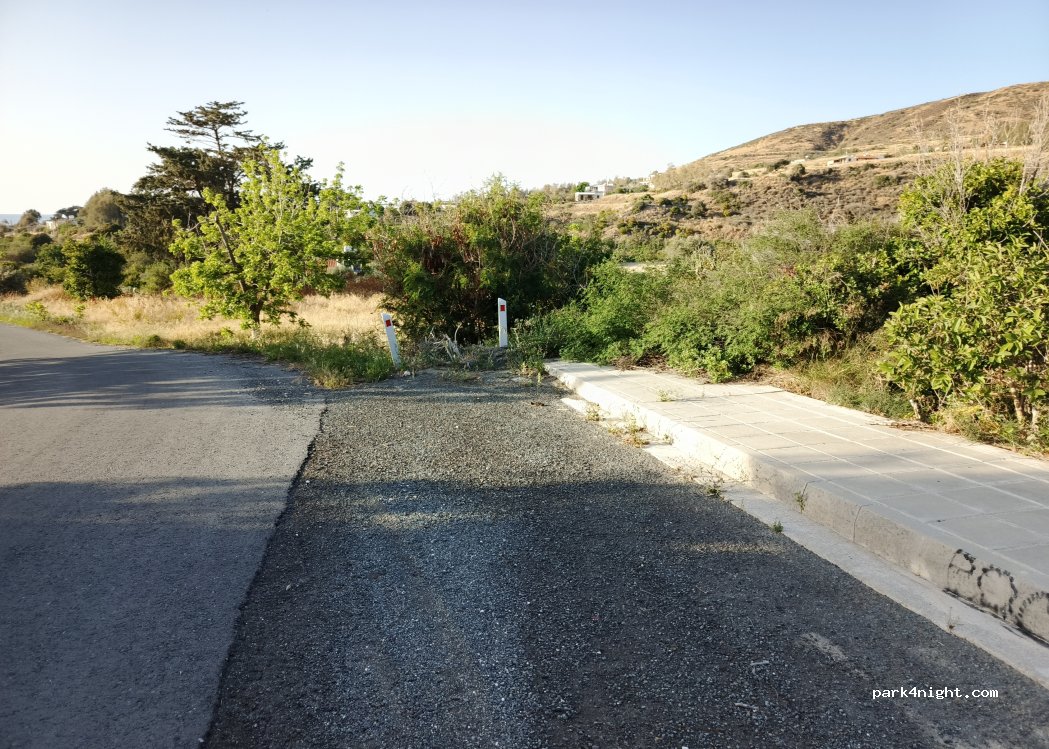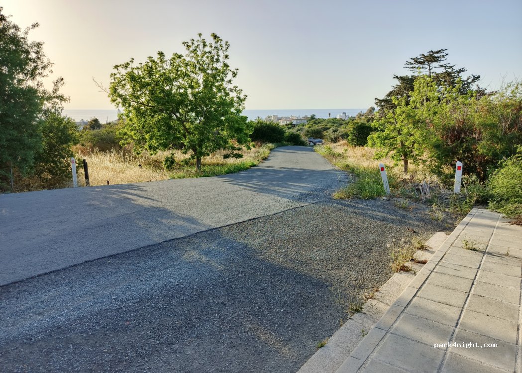 Entry and parking on an asphalt road. Easy access even for large cars. Very wide. You can get on a high sidewalk. This is important because the locals warn about snakes. Beautiful view of the sea.