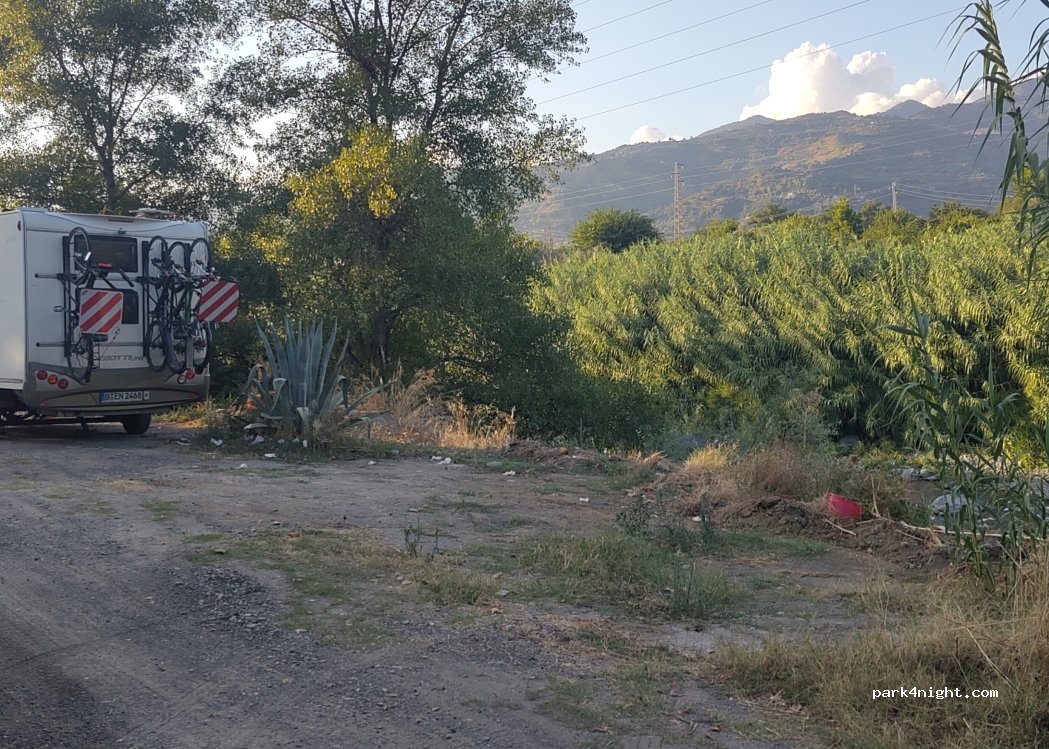 Strada sterrata appena prima del ponte, spazio per parcheggiare sul ciglio della strada e magari fare una nuotata nel fiume se si arriva fino al fiume. Posto meraviglioso e tranquillo, godetevelo.