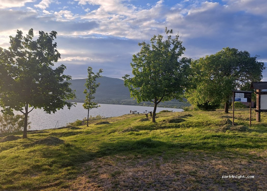 Es un buen lugar para aparcar junto al lago, con vistas a Mátra.