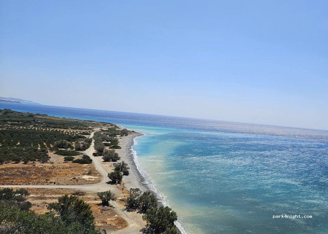 Weitläufiges Gelände abseits der Strasse mit steinigem Strand und sehr warmem Wasser. Wenn man weiter durchfährt wird die Fläche breiter und bietet auch sehr grossen Wohnmobile Platz. Schild am Platzanfang suggeriert das camping erlaubt ist. In der Hochsaison scheint es sehr belebt zu sein, jetzt ende Semptember sind wir ganz alleine.