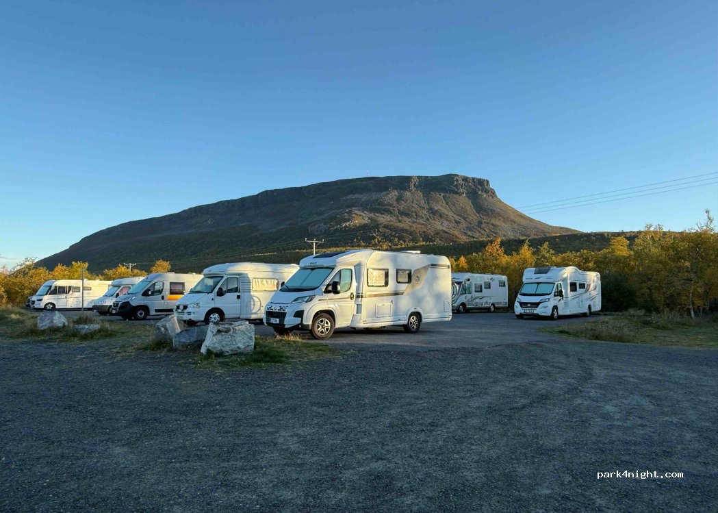 lovely big area. we parked on gravel area at waterfront with another larger motorhome, plenty of room but for some reason, cars kept parking directly behind us. not sure if they wanted shelter, was very windy as right on waterfront. quiet night, herd of Reindeer walking down main road next morning.