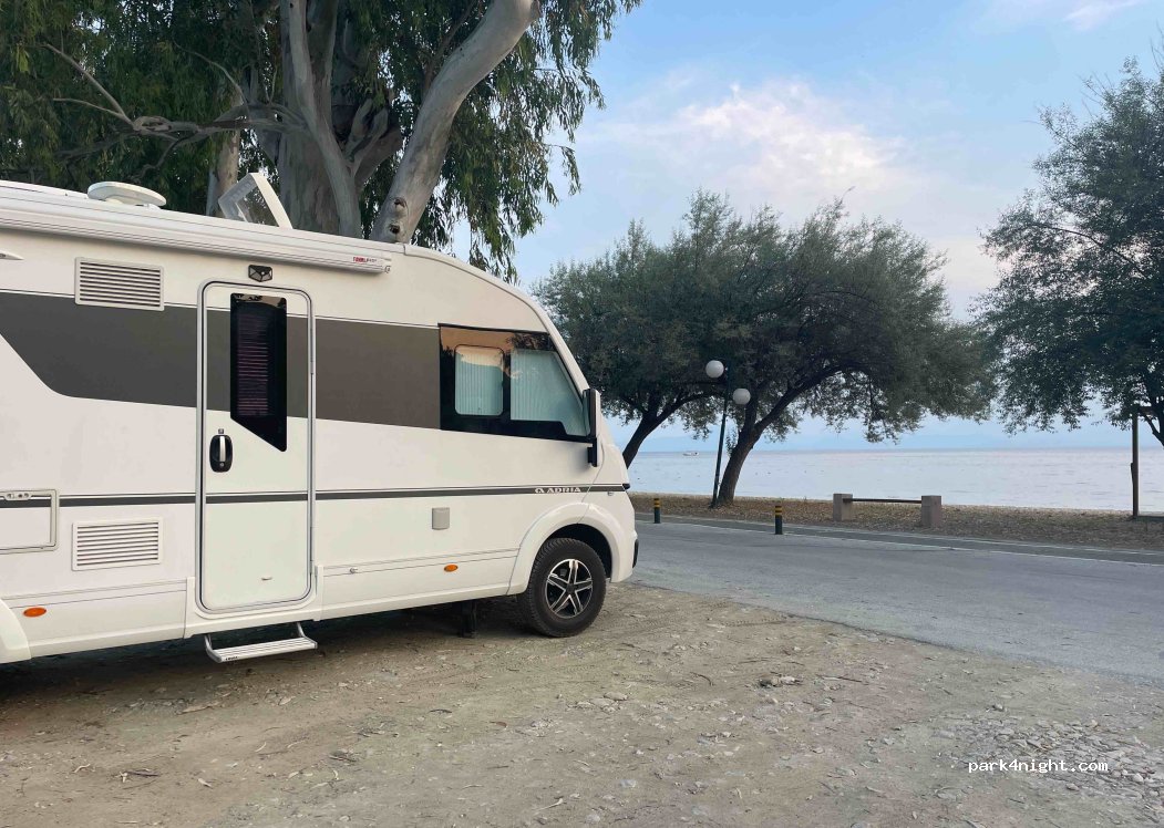 Aparcamiento en la calle frente a la playa de Kala Nera y cerca de las tabernas. Es mejor llegar al final de la tarde, cuando salen muchos coches.