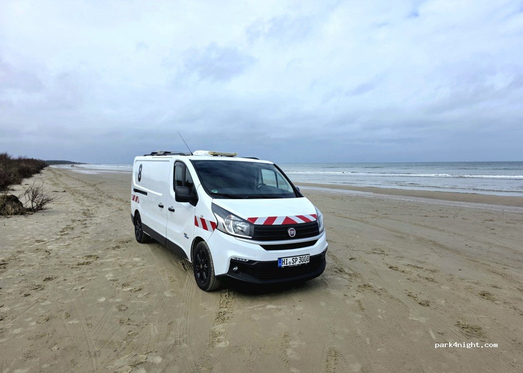 Befahrbarer Strand im Naturschutzgebiet – Toiletten und Mülleimer vorhanden