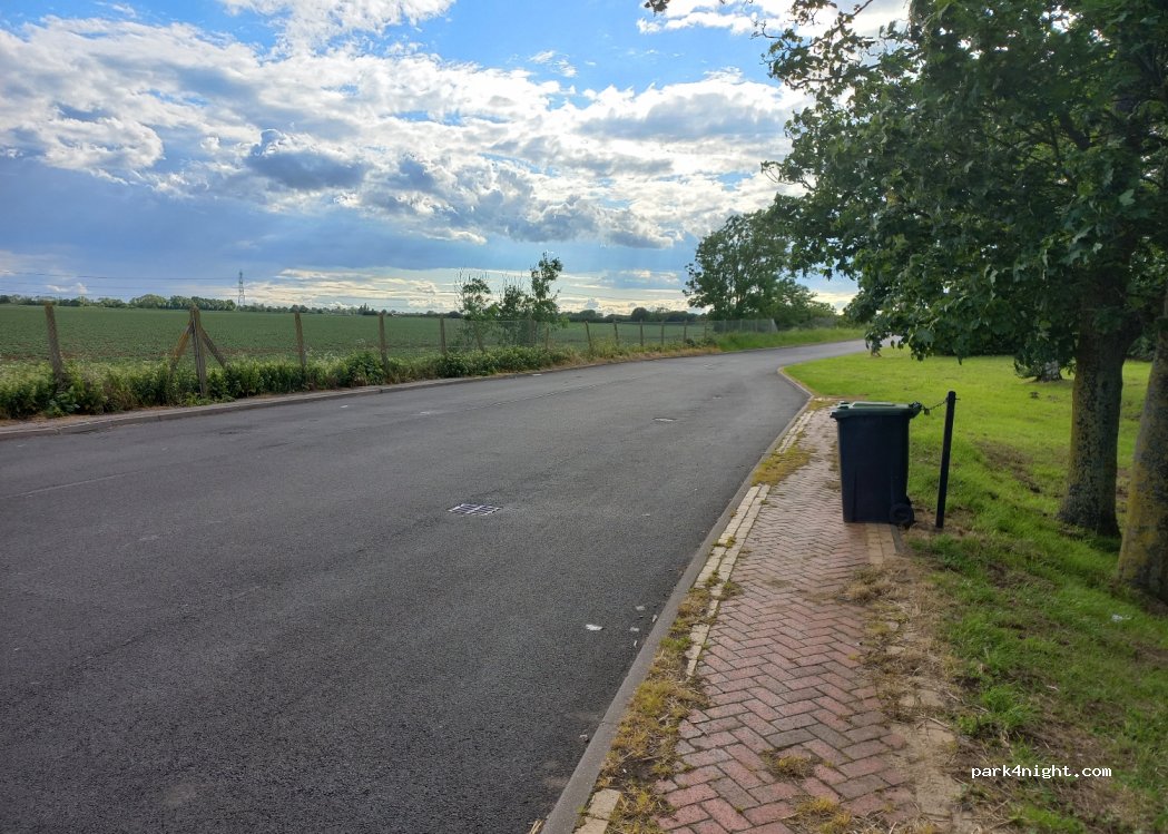 Lay-by set back from road. Few lorries parked overnight. Bins. Good phone signal