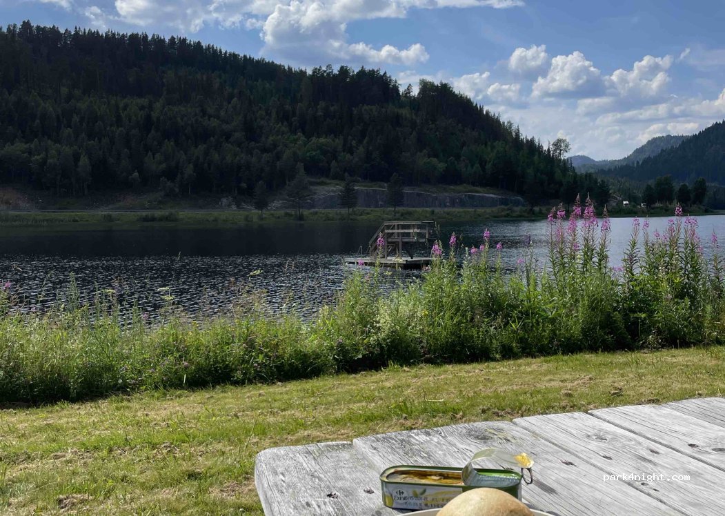 Une agréable halte en chemin avec baignade et table de pique-nique. On y trouve un espace vert, une petite plage et un plongeoir pour plonger dans le lac. Parking pour environ 15 voitures.
