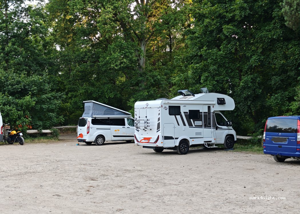 Großer Parkplatz, Nachts sehr ruhig. Direkt am See, toll für Spaziergänge. Nur in der Woche zu empfehlen am Wochenende überfüllt.