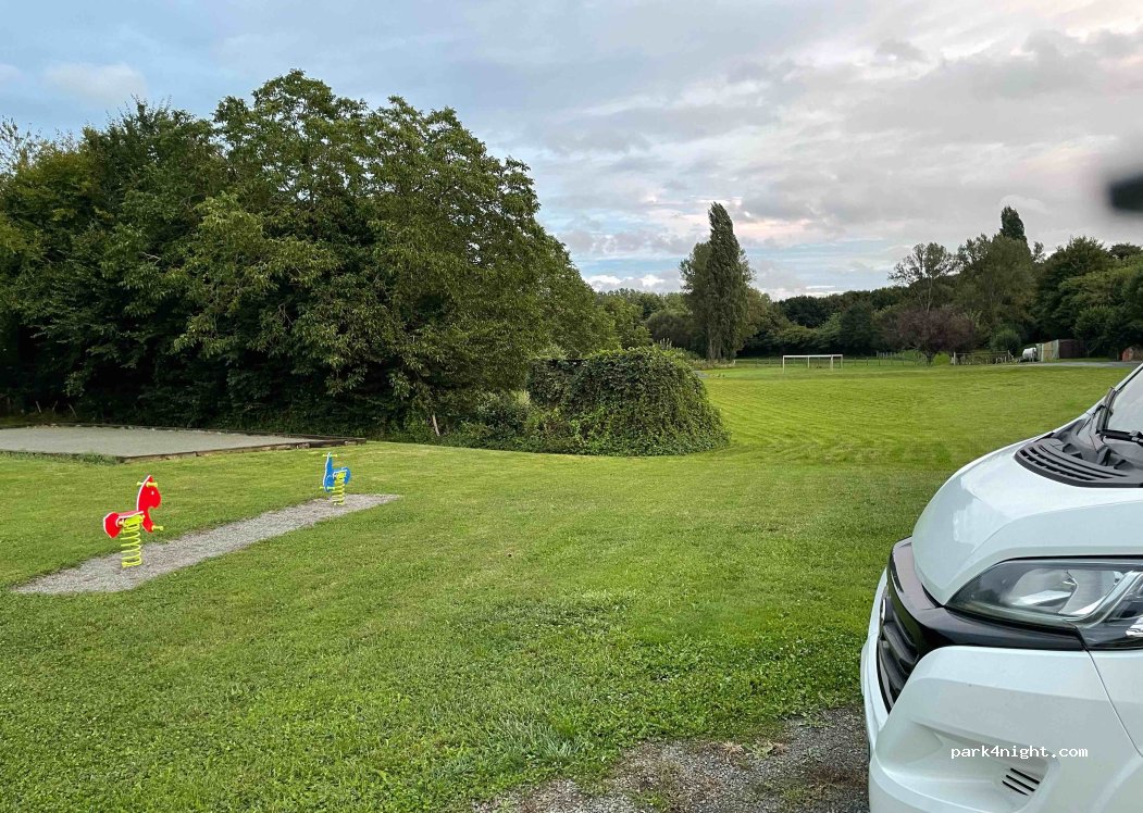 Belle petite place pour y passer la nuit avec terrain de boules, de foot, table de pique nique, WC public très propre, très calme la nuit, vous avez une auberge qui fait bar, tabac et une boulangerie (fermé le lundi tous les deux) Merci à la commune et à ces commerces pour leur accueil