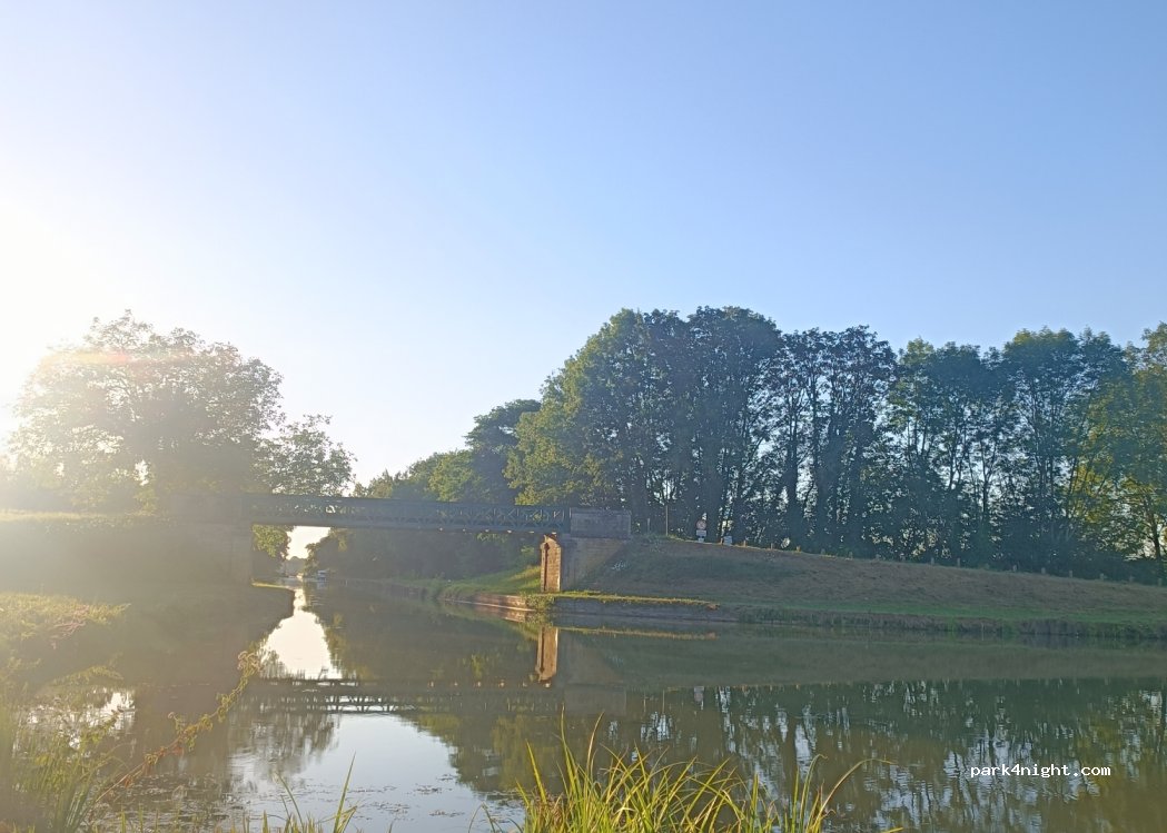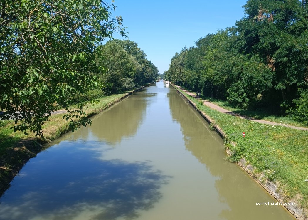parking gravier 3 places avec aucune commodité mais belle vue sur le canal . belles balades à proximité . proximité d'une voie ferrée mais peu de passage et surtout aucun de 22 à 6h . les enfants ont pu s'amuser sur le bord du canal , voir les.ecluses et se baigner dans la Loire au départ de ce parking .