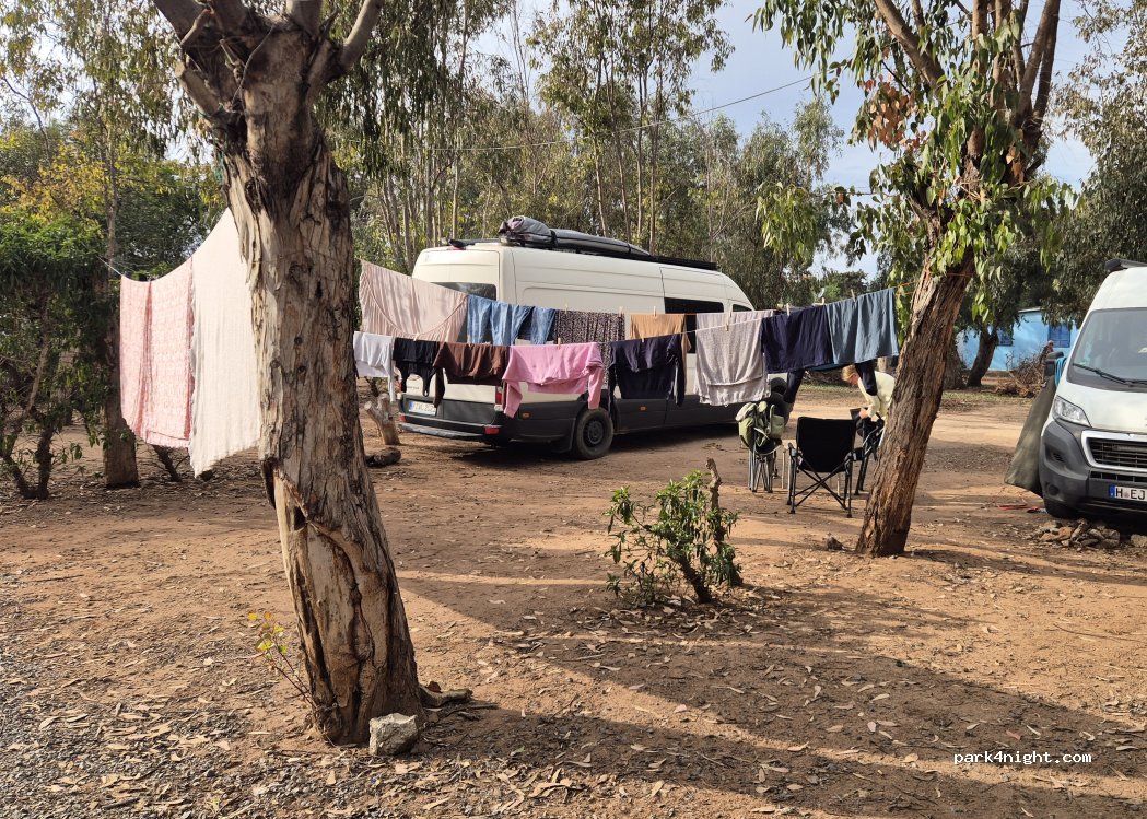 Lovely welcome from Said. Flat pitches on gravel or in the trees. Whilst the sanitary block is dated we found it clean and had hot showers. Black and grey waste dump near to the entry. Price reduces after 4 days. Short walk to the beach and to a fabulous bakery. Best WiFi coverage