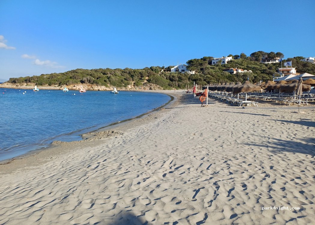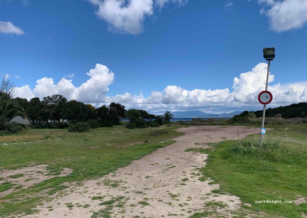 Nur ein kleiner Teil der Wiese ist Parkplatz. Von der Wiese hat man teilweise einen Blick aufs Meer. Parkmarkierungen sind ca. 4 Meter lang. Es gibt extra Preise für Wohnmobile. Kleiner schmaler Strand ca. 100 Meter entfernt. Ruhig und wie in der Natur stehend. Aktuell kostenlos. KEINE Mülleimer. Errinerung: Camping Verhalten ist das ganze Jahr auf Sardinien verboten.