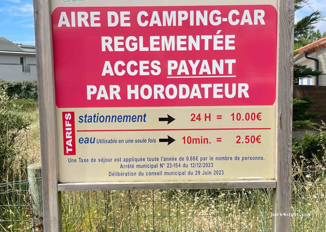 Emplacement avec vue sur mer, tranquille pour la saison, vidange possible tarif raisonnable, merci à la ville de jard sur mer