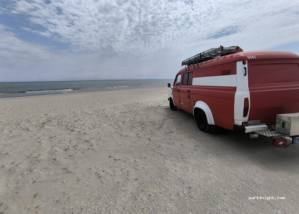 Ampio parcheggio quasi pianeggiante sulla spiaggia.