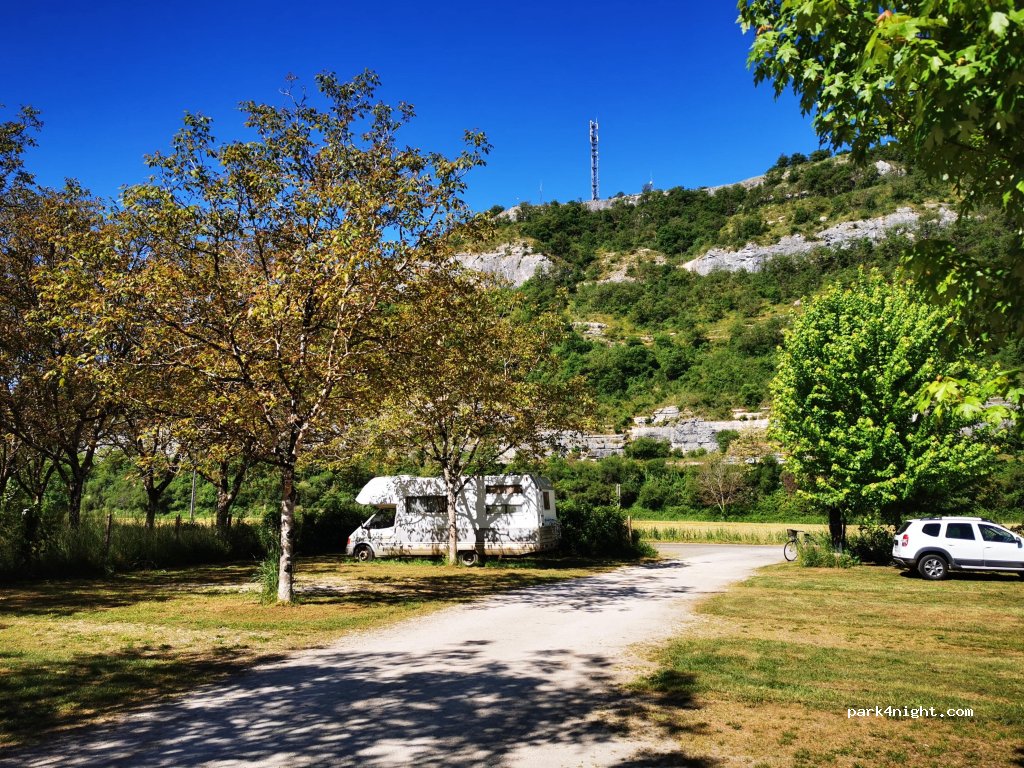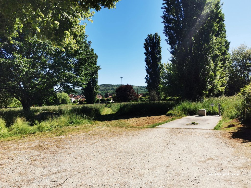 petit emplacement pour une dizaine de camping car dépend du camping 9 euros la nuit services sur place on a passé une super nuit. merci