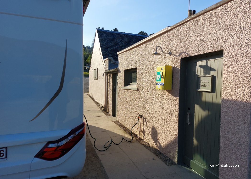 The Dores Inn has a strict no overnight parking policy, due to covid and they got fed up with cleaning up after over nighters who chose to use the car park as a toilet. gate locked 9pm-12am, & Monday and Tuesday it does not open at all. there are plenty of "NO OVERNIGHT CAMPING " signs everywhere you look, especially a great big one just as you drive in. Great food though, just no sleeping.