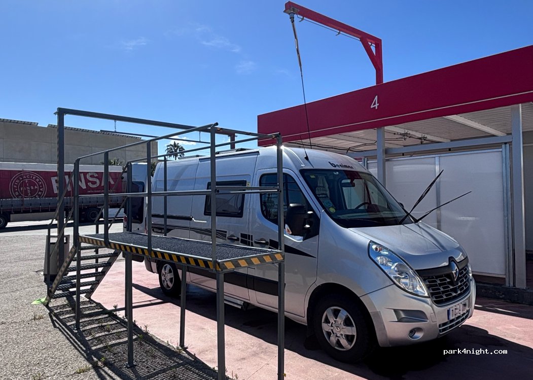 CEPSA and Low-Cost gas station with a wash facility for campers and motorhomes up to approximately 7 meters in length. Access is via a ladder for cleaning the roof (solar panels, etc.) of our motorhomes and campers. Very convenient with ample space for maneuvering large vehicles. Quick access to the V-31 and AP-7 highways.