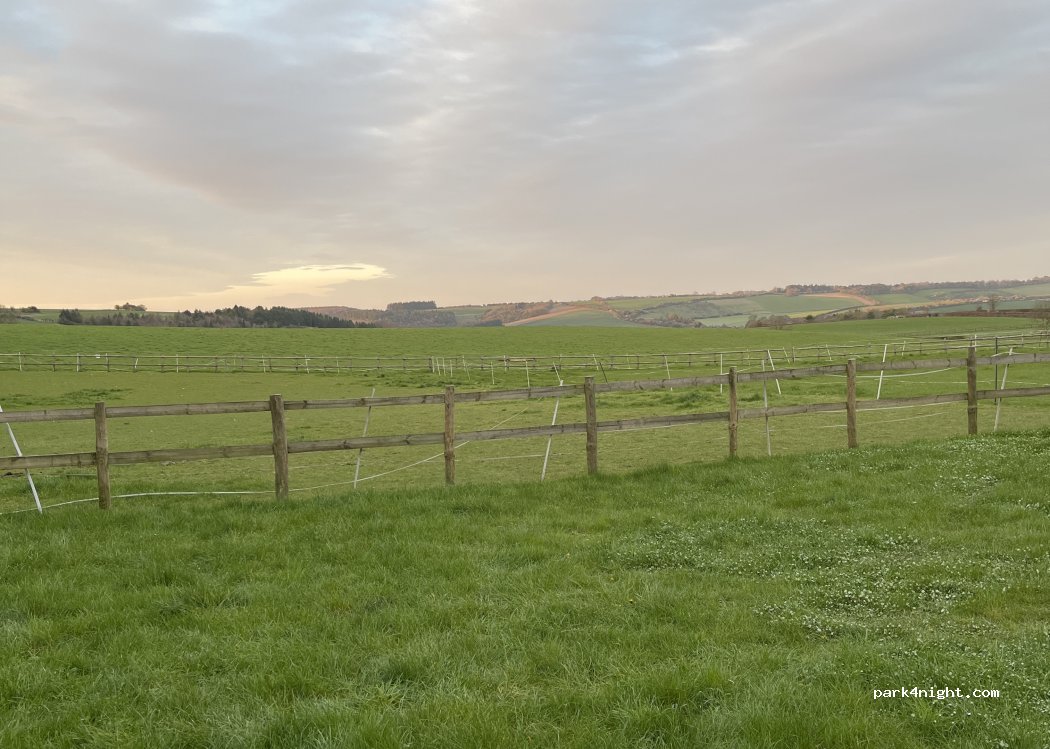 Joli camping à la ferme avec une vue magnifique sur les collines environnantes.