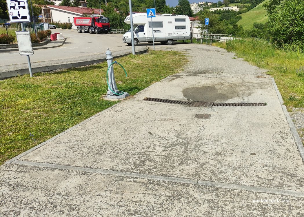 una bella area sosta molto comoda e conveniente carico scarico tutto gratuito l'elettricità si paga al consumo 50 centesimi per un kilowattora. vicinissimo al supermercato Sigma punto molto comoda per chi ha necessità di rimanere nel paese Inoltre c'è il sasso di Dante da visitare con un percorso di 3 km circa da fare a piedi molto panoramica