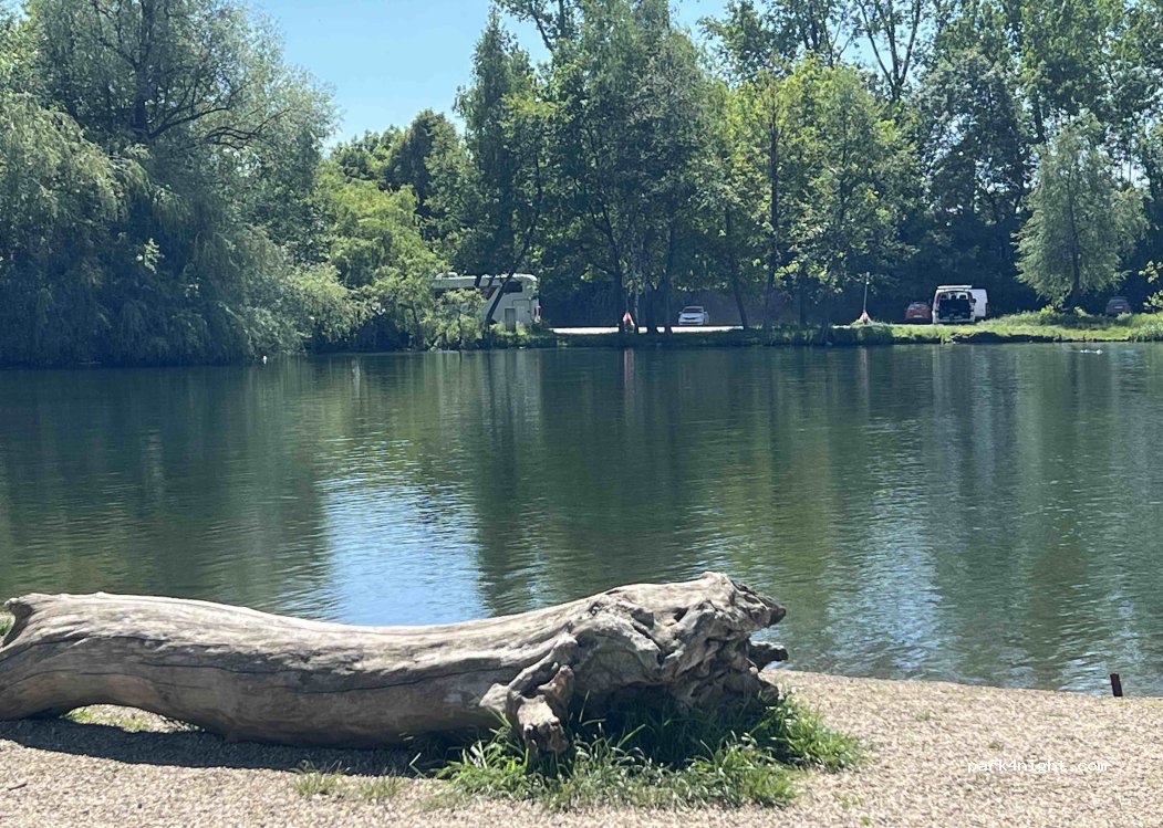 Huge parking lot right next to the pond, possibility of a nice walk or bike ride around the area, a little bit next to it is a snack stand and a little further on there is a nudist beach. We were here on Saturday evening until 10 pm. there was a disco going on at the kiosk, then it was quiet. There were several campervans on the site besides us and the fishermen did not disturb us at all