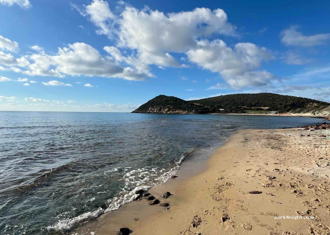 Naprosto skvělé místo na ceste mezi severem a jihem Sardinie. Klid a pohoda. 9€ celý den, stáli jsme tu i přes noc (2noci) a uplne v pohodě. Na pláž kousíček, po ceste malá hospůdka, na pláži servis (lehátka, slunečníky …za poplatek). Na pláži pak restaurace, kde slušně vaří. Venkovní dřevěné stoly pro snídani nebo véču při západu slunce.