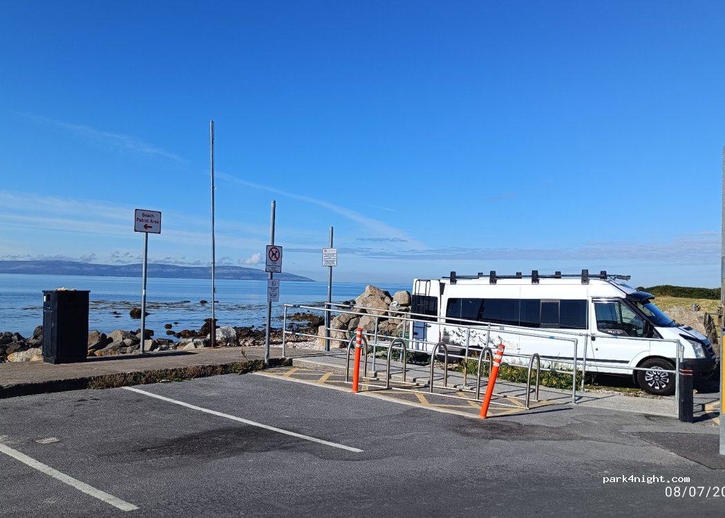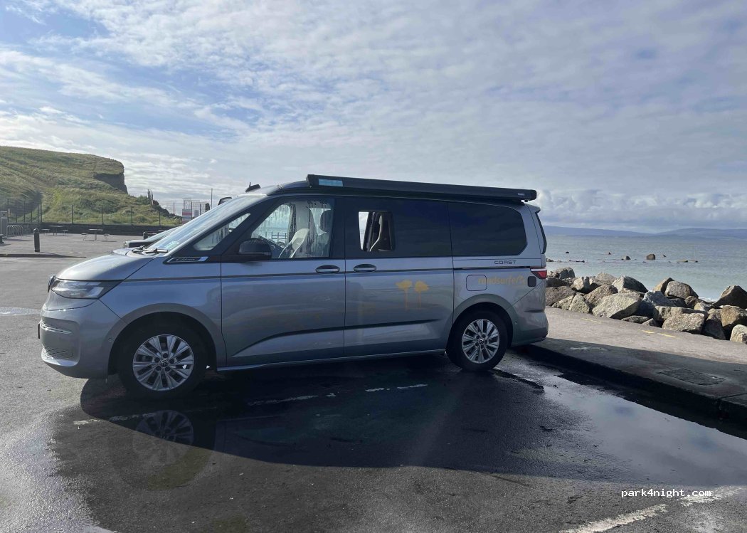 Sur le papier, l'endroit était idéal,en fait nous ne nous sommes pas sentis en sécurité, des bruits suspects, attroupement, rodéo. La plus mauvaise nuit passée en Irlande. Si vous n'avez pas le choix, garez - vous au début du parking pas tout au bout ça limitera peut être les problèmes.