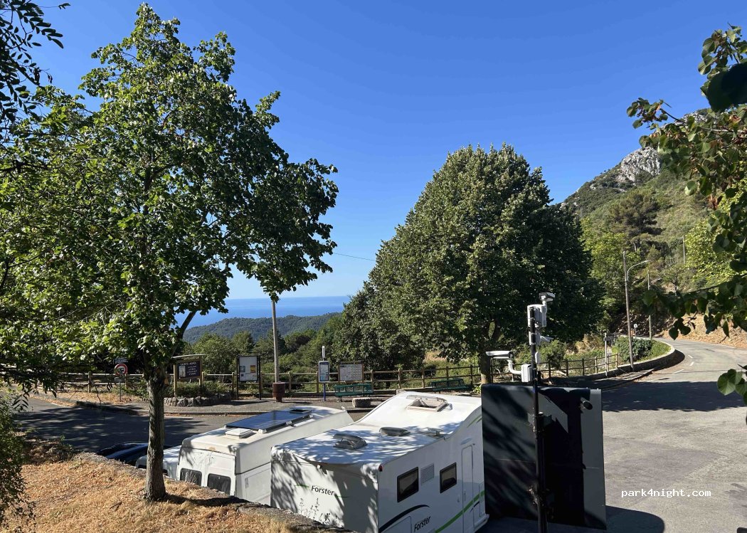 ausreichen Platz auch für mehrere Campervans. wunderbare Anfahrt über die Bergstraße nach Sainte-Agnes. 1-2 Nächte super!